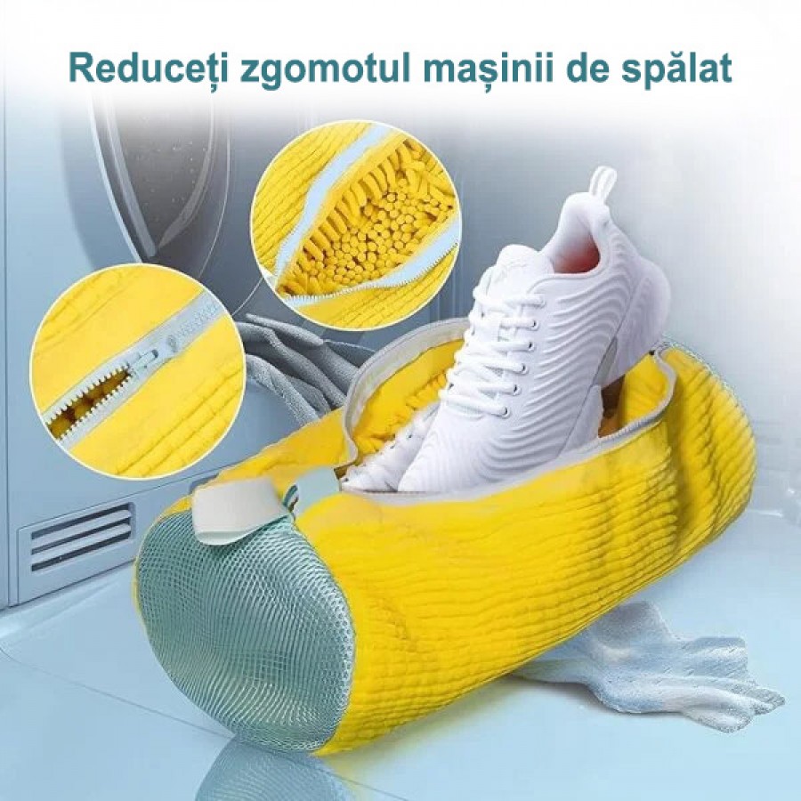 Sac de spalat incaltaminte, fabricat din material rezistent, inchidere cu fermoar, galben. Protejati-va incaltamintea in timpul spalarii cu acest sac practic si durabil, special conceput pentru a preveni deteriorarea incaltamintei in masina de spalat.