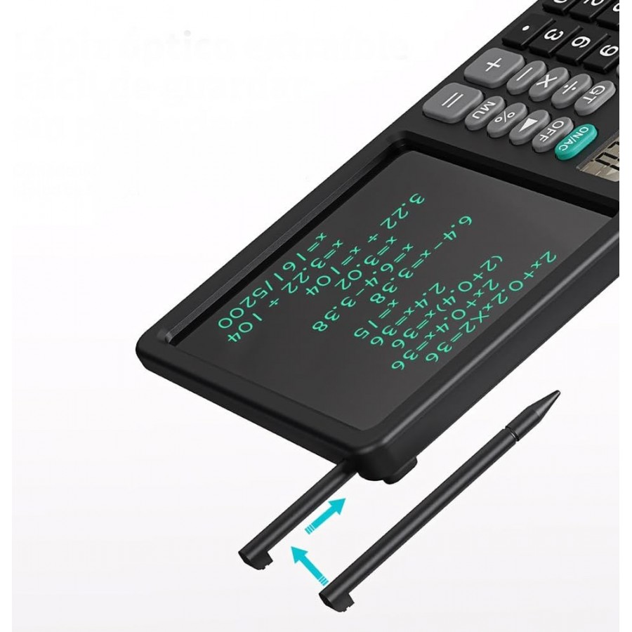 • Calculatorul stiintific este echipat cu doua creioane de tip stylus pen ascunse pe partea din stanga si din dreapta, ce va permite sa scrieti sau sa desenati linii luminoase si clare. Exista un dispozitiv de blocare a diapozitivelor anti-stergere sub afisaj care previne stergerea accidentala a notelor si blocheaza ecranul.