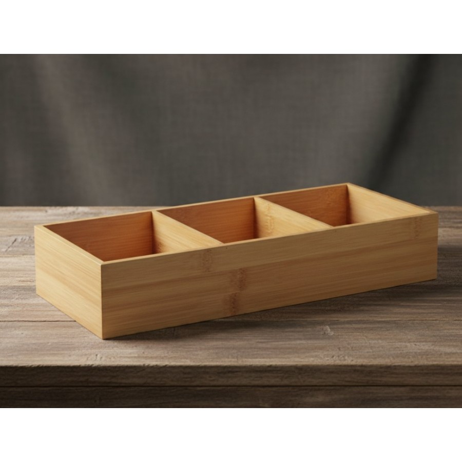 Etichete: Cutie din bambus pentru organizare, 3 compartimente, 38x7X15 cm, utilizare universala, Curatenie si Depozitare, Articole pentru casa