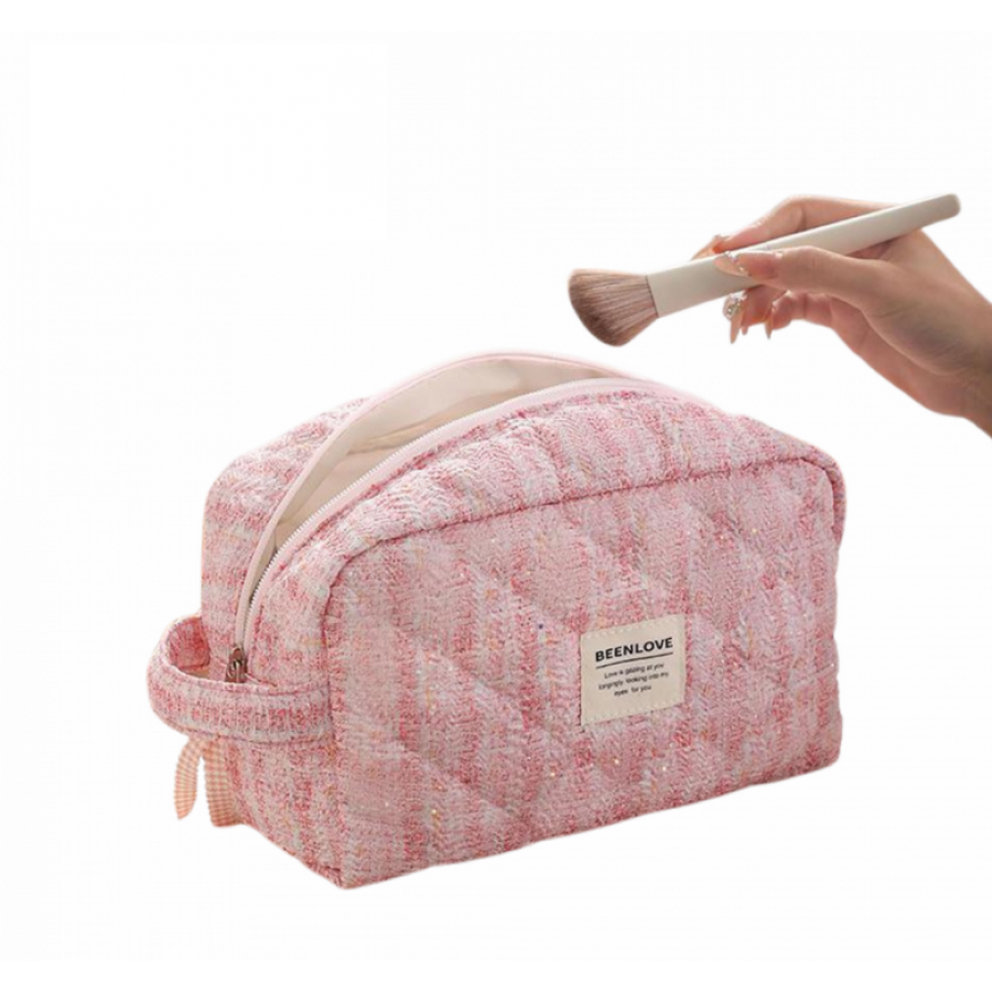 ✨ Organizează-ți produsele de înfrumusețare cu stil cu această geantă cosmetică premium, realizată din material textil moale, cu aspect elegant și feminin.