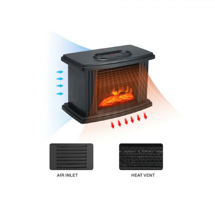 Elementul de incalzire PTC asigura o incalzire eficienta, in timp ce efectul vizual de flacara reala de pe partea frontala ofera o atmosfera calda si relaxanta de semineu. Aparatul este fabricat din plastic ABS durabil si are dimensiuni compacte (22 x 16 x 13 cm), fiind usor de pozitionat.
