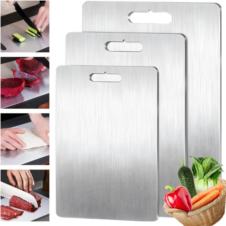 Tocatoarele sunt fata-verso pentru separarea ingredientelor: o parte pentru fructe si legume si cealalta pentru carne . Manerul din otel inoxidabil le face usor de mutat, depozitat sau agatat, mentinand bucataria ordonata. Sunt utile atat acasa, cat si in deplasare/camping: pentru intins aluat, tocat legume sau feliat paine.