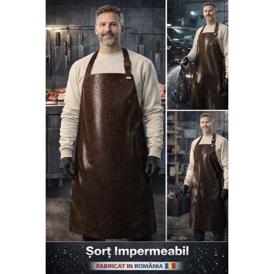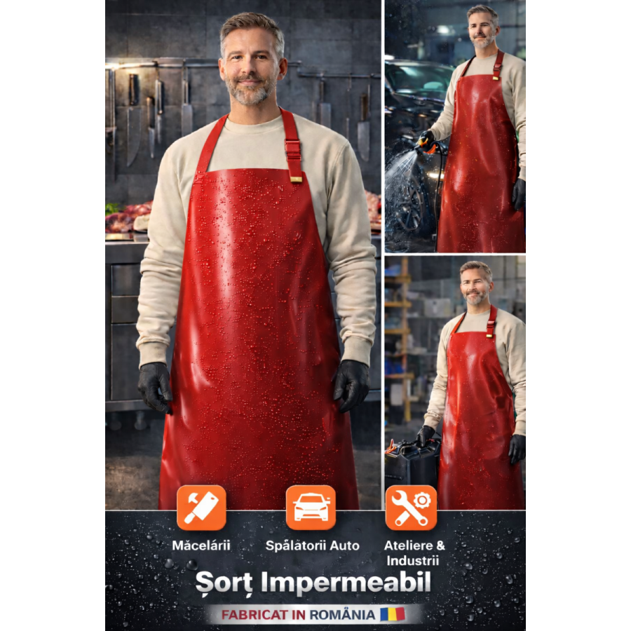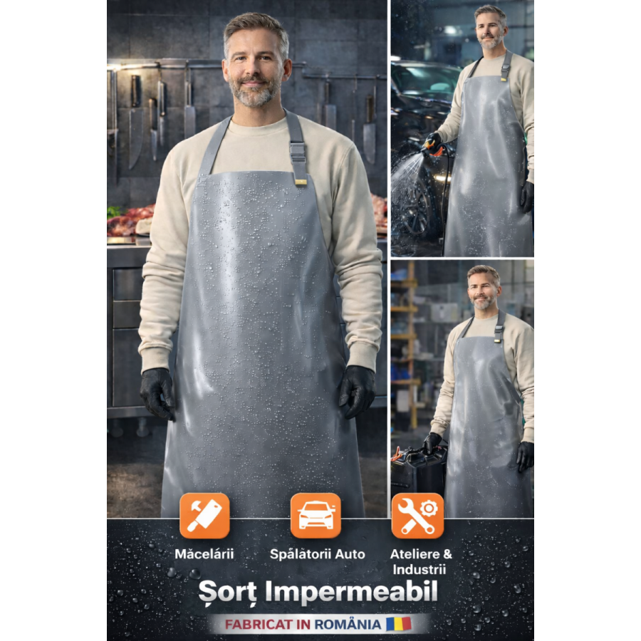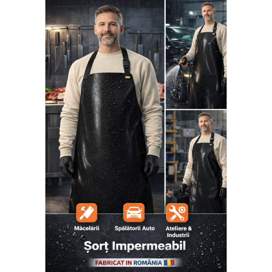 Sort Impermeabil pvc ALB inchidere cu clipsuri marime universala spalatorii auto, macelarii, horeca, agricultura, frizeriii, diverse industri si domeniii de activitate, se curata usor , nu se pateaza, este confortabil, protejeaza de umezeala , produs fabricat exclusiv in Romania.