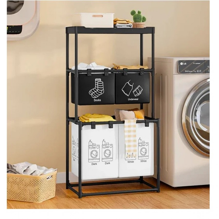 - 4 secțiuni de sortare – separi rapid hainele pe culori sau categorii, fără bătăi de cap înainte de spălat