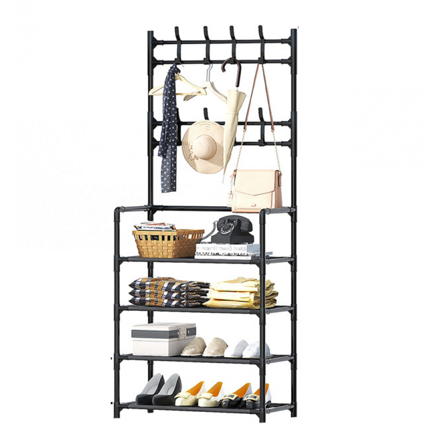 Cuier haine cu suport pantofi - acest suport pentru genti are 5 niveluri de rafturi pentru depozitarea usoara a pungilor, prosoapelor, cearsafurilor, cartilor sau pantofilor. Acest raft multifunctional mentine dormitorul ordonat. Spatiu mare pentru agatat haine si rafturi convenabile de depozitare, pastreaza spatiul ordonat. Rafturile portabile sunt rapid si usor de instalat.