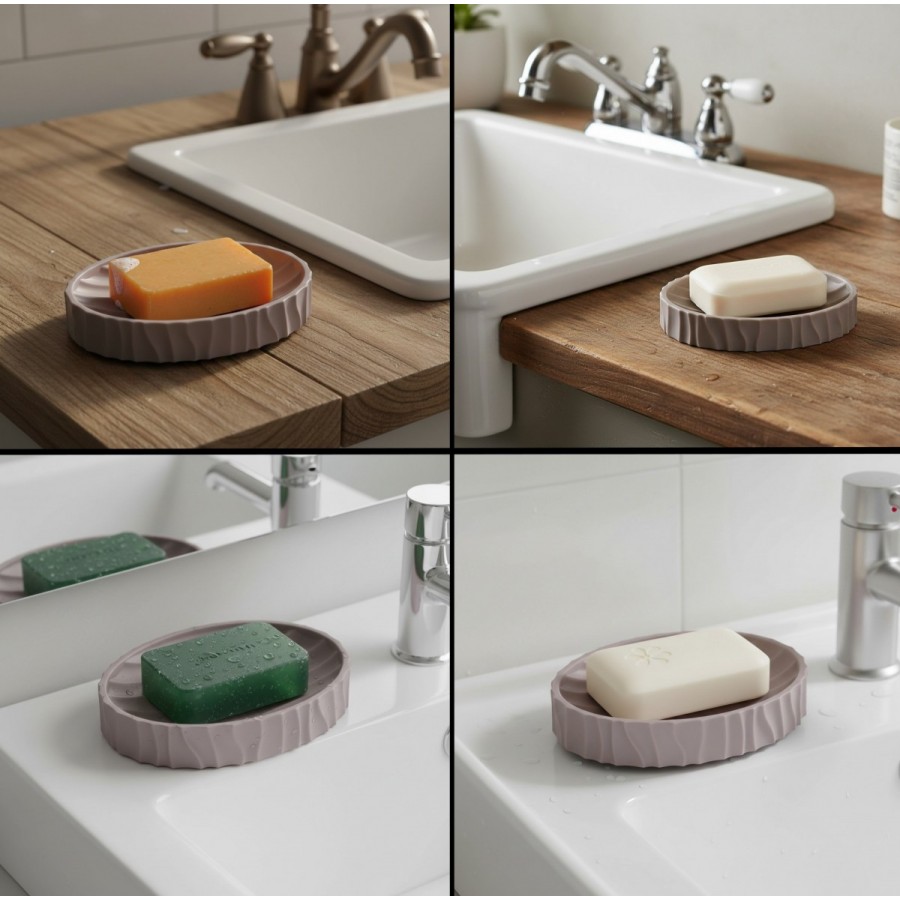 Forma ovala si dimensiunile compacte o fac usor de amplasat pe chiuveta, raft sau in zona dusului.