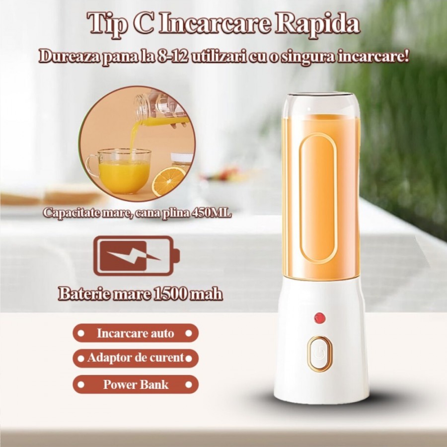 Mini Blender pentru Smoothie si Shake, 10 Lame, 21000 RPM, 2 Recipiente Incluse, Portabil