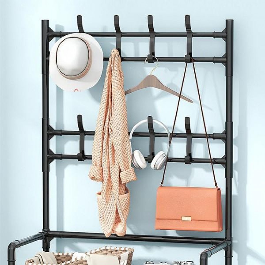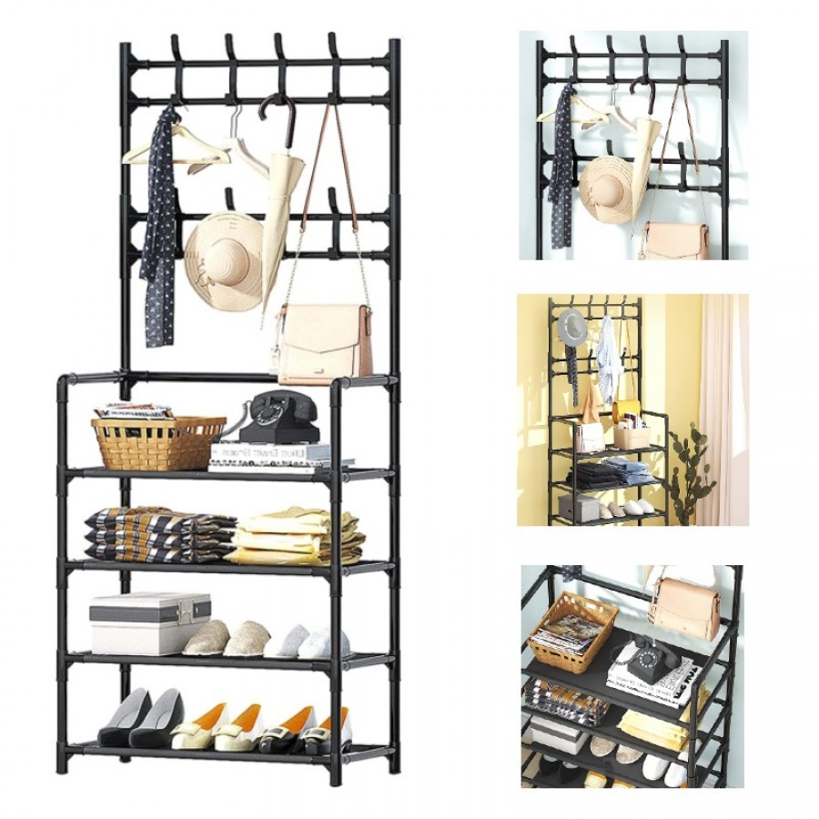 Cuier haine cu suport pantofi - acest suport pentru genti are 5 niveluri de rafturi pentru depozitarea usoara a pungilor, prosoapelor, cearsafurilor, cartilor sau pantofilor. Acest raft multifunctional mentine dormitorul ordonat. Spatiu mare pentru agatat haine si rafturi convenabile de depozitare, pastreaza spatiul ordonat. Rafturile portabile sunt rapid si usor de instalat.