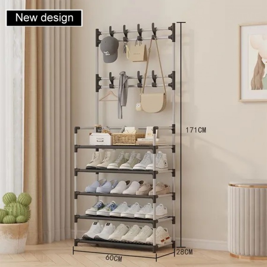 Etichete: Cuier metalic + Pantofar cu 5 rafturi, pachet 2 in 1 pentru incaperi mici, hol, living, birou, Curatenie si Depozitare, Articole pentru casa
