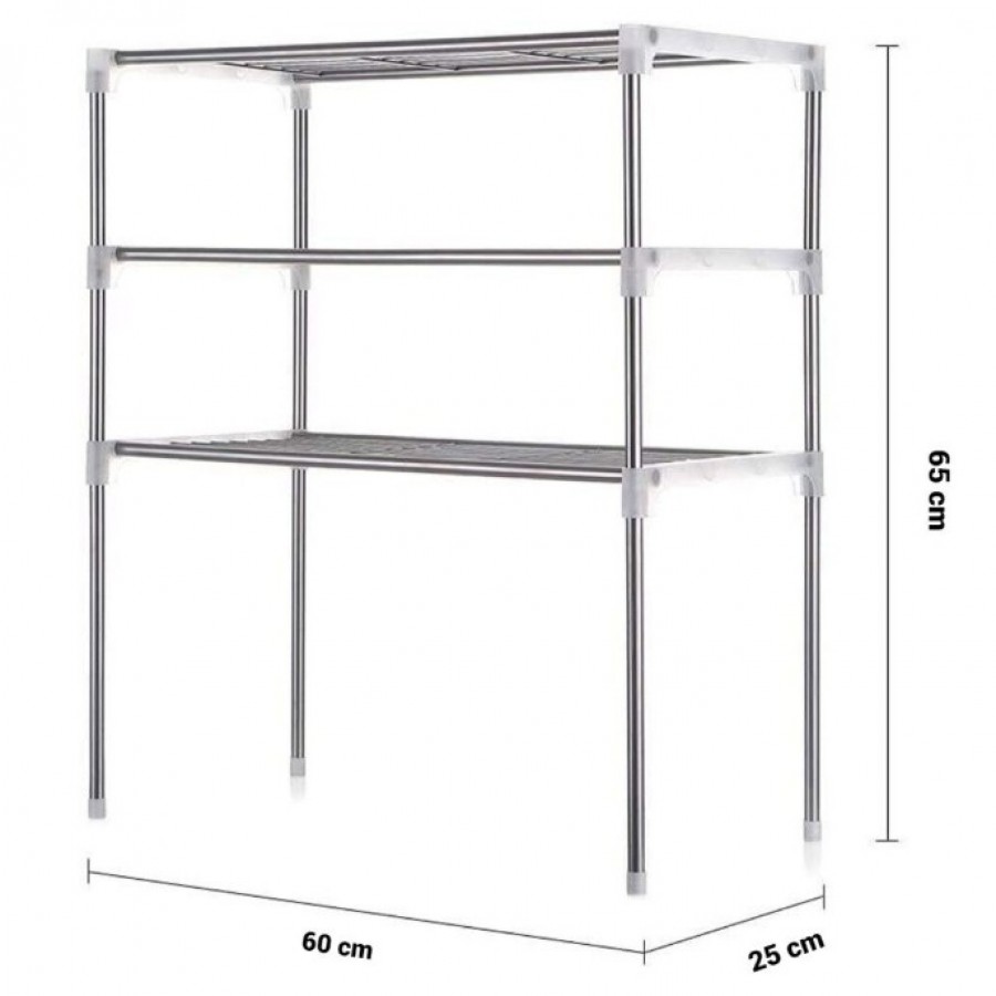 Raftul multifunctional este realizat din material plastic si otel inoxidabil. Raftul poate fi asamblat in mai multe moduri si poate fi utilizat atat in bucatarie cat si pentru depozitarea oboectelor din baie sau camara. Stabil si rezistent: Facut din bare otel inoxidabil si accesorii de conectare din plastic, este un element de mare ajutor in casa dumneavoastra. Cele doua rafturi sunt realizate tot din bare puse la distanta mica una langa cealalta, permitand circulatia aerului si evita depunerea prafului.