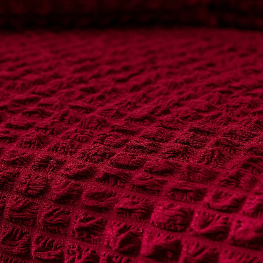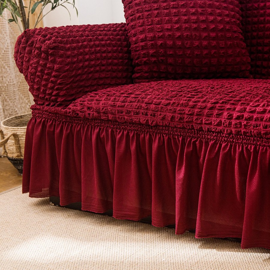 Husa creponata universala canapea 3 locuri, bordo (visiniu), cu volane, bumbac, rezistenta la apa