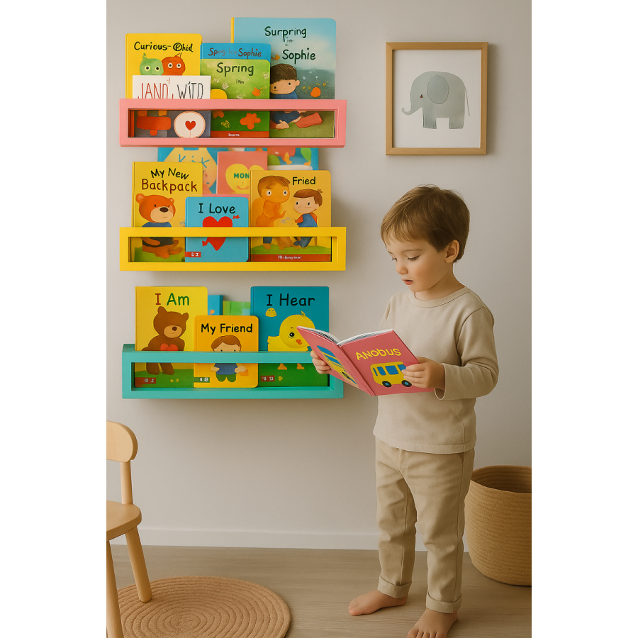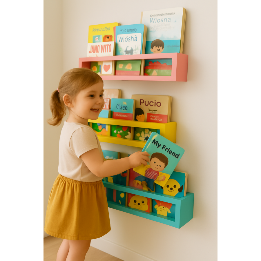 Aceasta etajera nu este doar un obiect de mobilier, ci o invitatie catre independenta, curiozitate si dragoste pentru lectura. Poate fi montata pe perete sau asezata direct pe mobilier, adaptandu-se nevoilor si stilului camerei copilului tau.