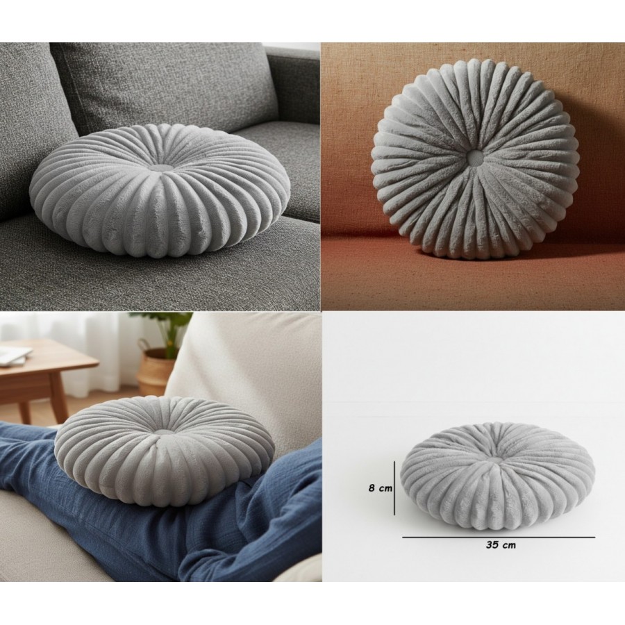 Etichete: Perna decorativa moale si confortabila, model cu nasture, rotunda, Ø35x8 cm, poliester, gri, Textile si Covoare, Articole pentru casa