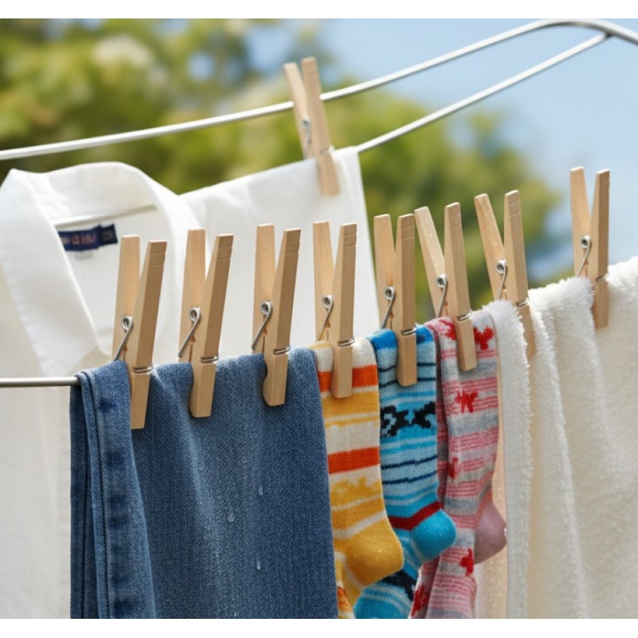 Sunt potrivite atat pentru utilizare in interior, cat si in exterior, pe sfoara de rufe, uscator sau suporti speciali.