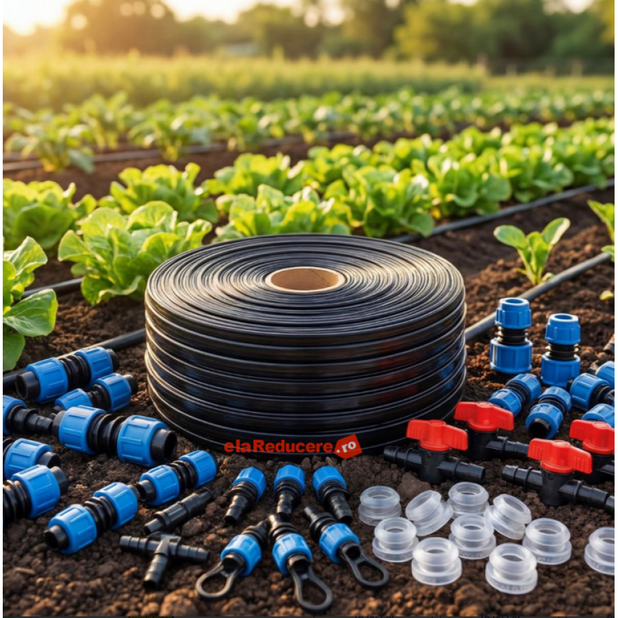 Etichete: Banda de picurare 100 m PLUS 40 accesorii, 40 in 40 cm, 2.2 l/h, 6 mil, D-16 mm, cu DUZE, Furtunuri si Benzi de picurare, Gradina si Bricolaj