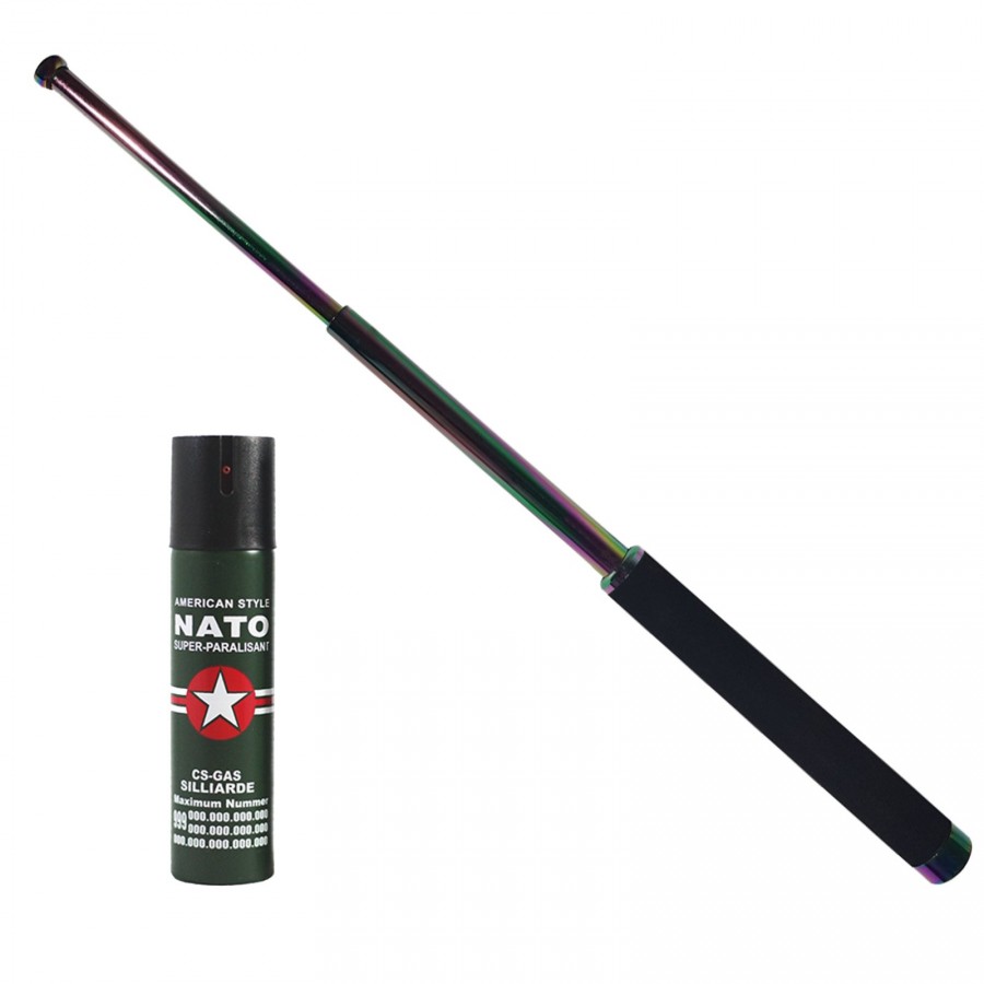 Baston telescopic 65 cm, rainbow, cadou spray NATO 60 ml