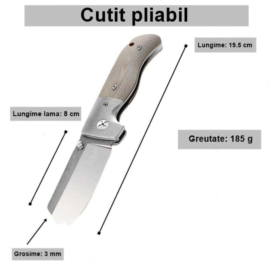 Cuțit pliabil cu lamă din oțel inoxidabil pentru o rezistență excelentă la coroziune în condiții severe.