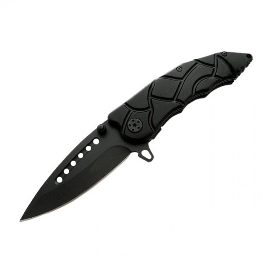Lama cu varf ascutit este realizata din otel inoxidabil 420 de inalta calitate, acoperita cu un strat de protectie negru care previne coroziunea si reduce efectul de stralucire.