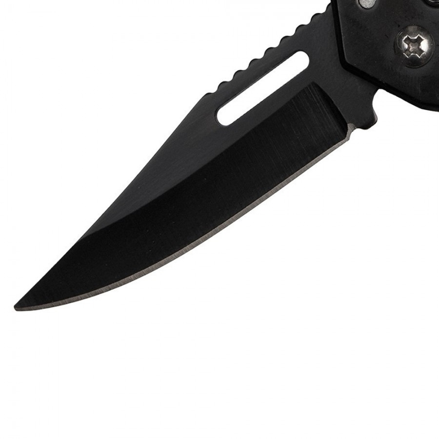 Lama cu varf ascutit este realizata din otel inoxidabil 420 de inalta calitate, acoperita cu un strat de protectie negru care previne coroziunea si reduce efectul de stralucire.