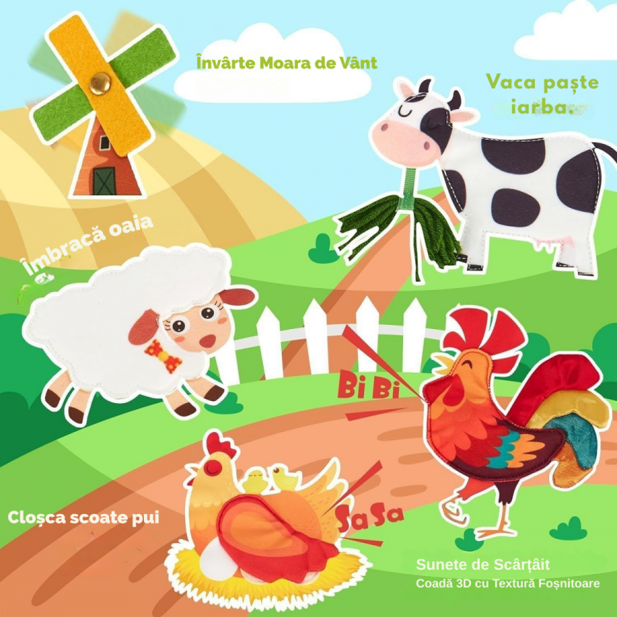 Etichete: Busy Board Montessori Fermă – Jucărie senzorială educativă 20-in-1 pentru copii 1-4 ani, Jucarii și jocuri educative, Lumea Copiilor