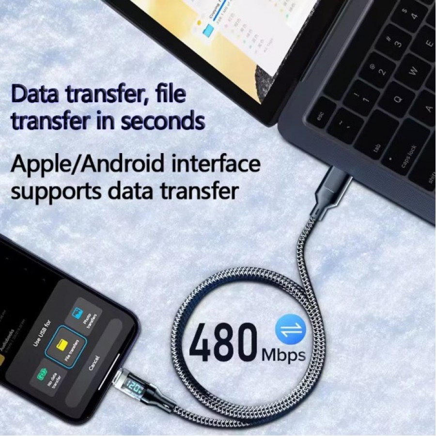 Acest cablu de date este proiectat pentru a oferi o încărcare super rapidă și o transferare eficientă a datelor. Afișajul digital LED permite utilizatorilor să monitorizeze în timp real procesul de încărcare, asigurându-se că dispozitivul lor este încărcat în mod optim.