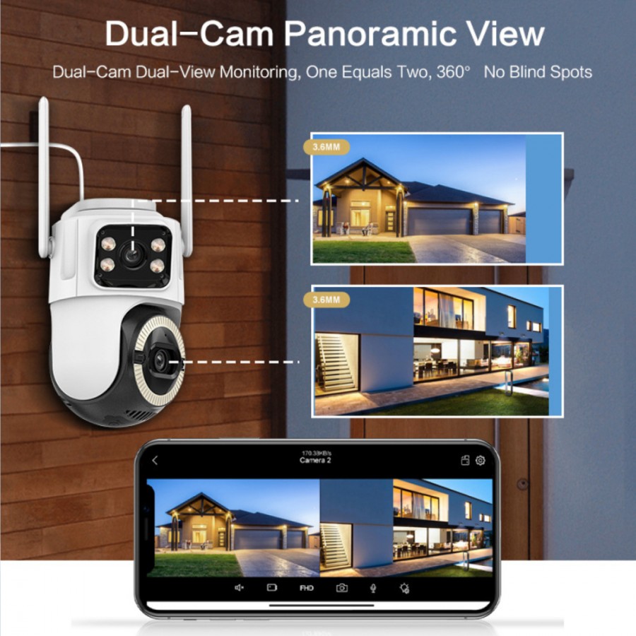 - Sistem cu lentile duble, ofera o acoperire panoramica si supraveghere simultana a mai multor zone fara puncte oarbe,