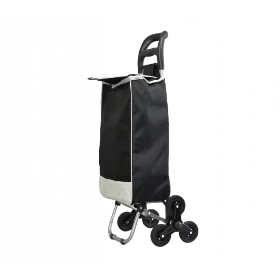 Carucior pentru cumparaturi cu roti stea Caruciorul pentru cumparaturi este dotat cu roti speciale ce permit urcarea scarilor cu usurinta si este realizat dintr-un material impermeabil de calitate, ideal pentru cumparaturi.