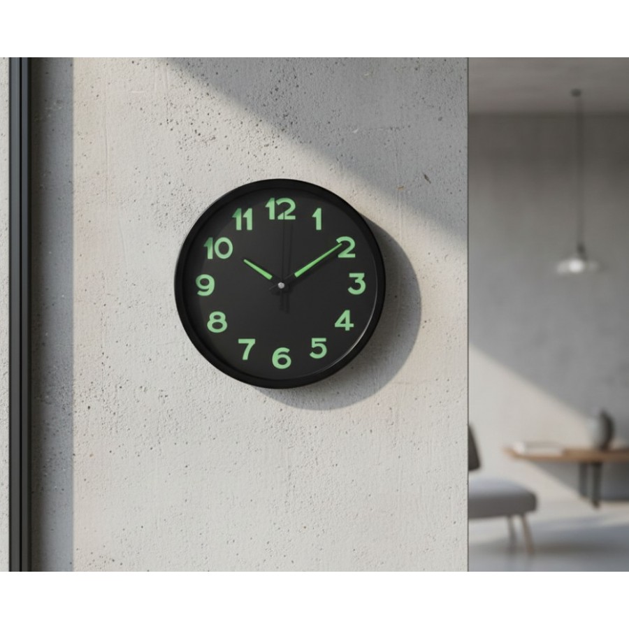 Acest ceas decorativ de perete imbina functionalitatea cu un design modern, fiind ideal pentru orice incapere din locuinta sau birou. Cifrele fosforescente asigura o vizibilitate buna chiar si in conditii de lumina scazuta, oferind un plus de confort pe timp de noapte. Dimensiunea compacta il face usor de integrat in diverse spatii, fara a incarca vizual peretele.