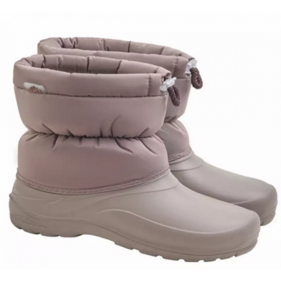 - Partea superioară: confecționată din material textil impermeabil, matlasat, prevăzut cu șnur reglabil și opritor, pentru o fixare sigură și protecție împotriva pătrunderii zăpezii.