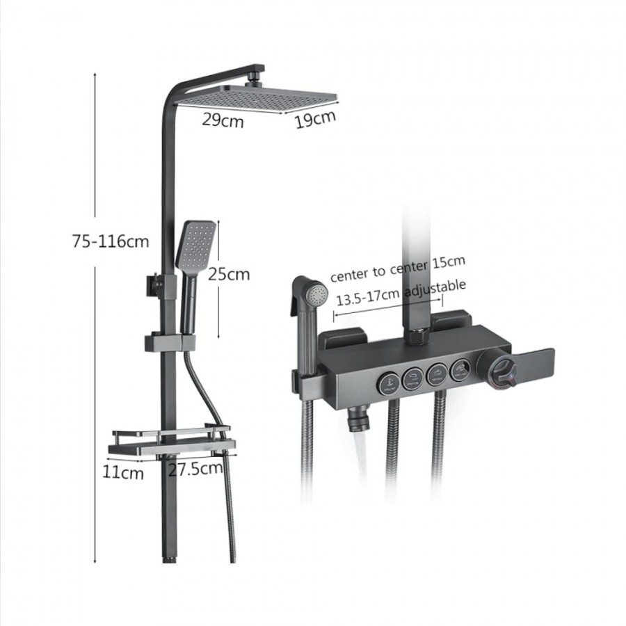 Set Coloana Dus Premium, Alama Cupru, 4 Functii, Butoane Piano, Gri Grafit, Tip Ploaie