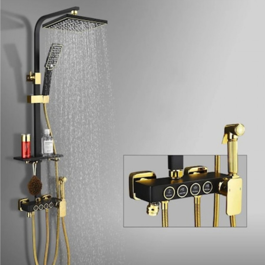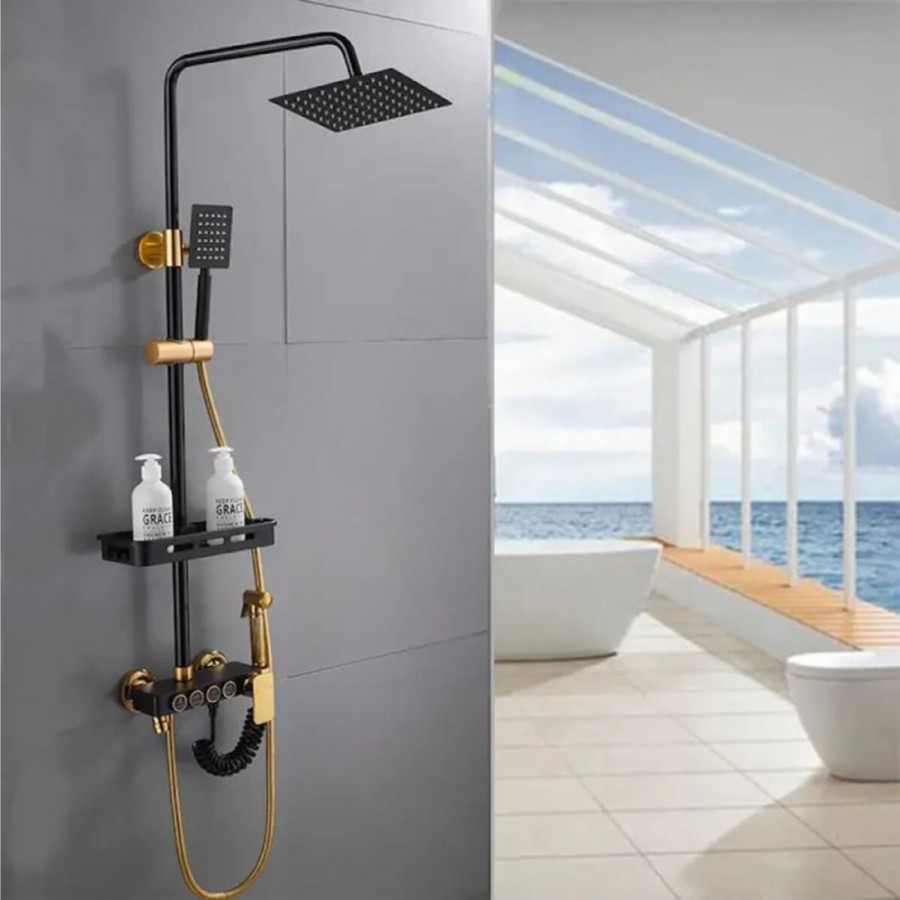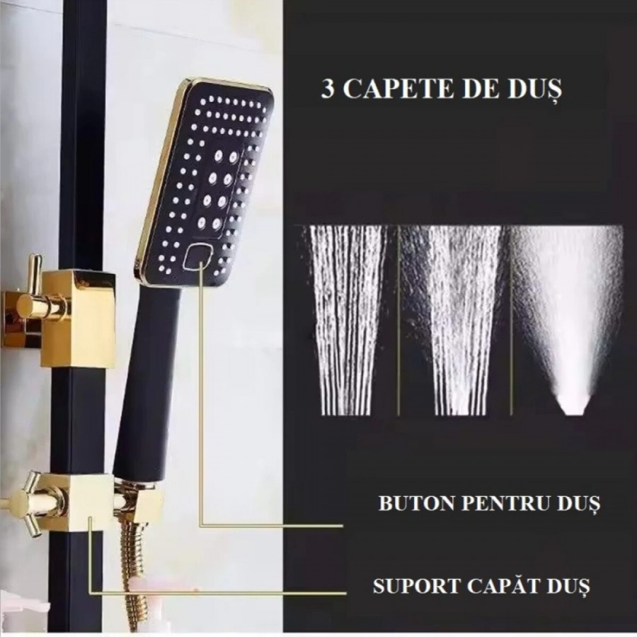 Etichete: Coloana de Dus Premium din Alama, 4 Functii, Para cu Efect Ploaie, Montare pe Perete, Negru cu Auriu, Sanitare si accesorii, Articole pentru casa