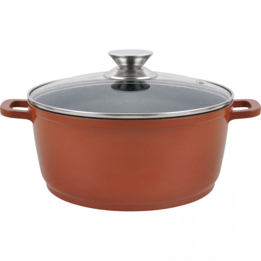 Cratita din aluminiu turnat , placata cu ceramica , cu capac din sticla termorezistenta.