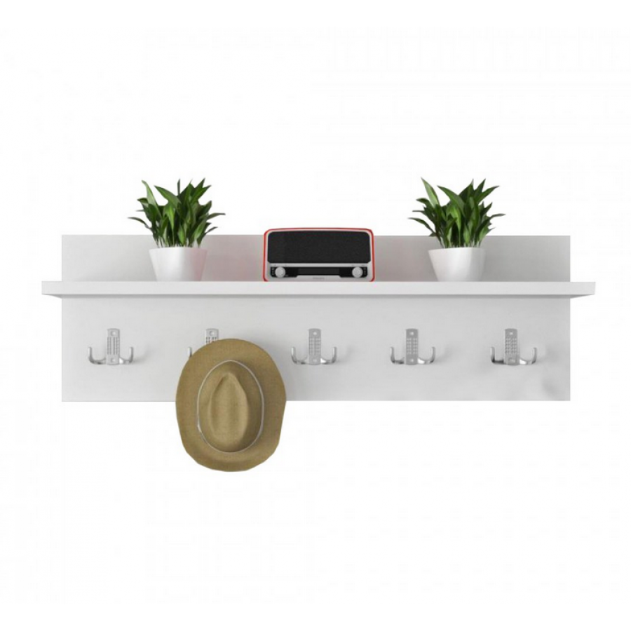 Cuier hol modern cu 5 agatatori si polita, ALB, 70x20cm