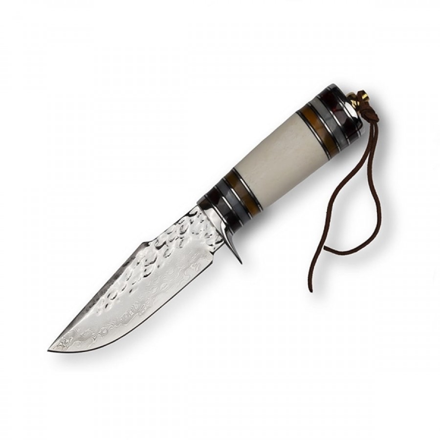 Lama cu un profil universal de vârf este realizată din oțel Damasc de înaltă calitate, călit la 60-61 HRc .