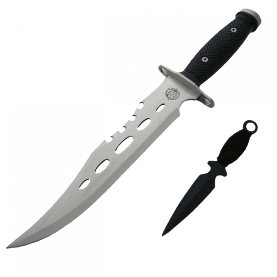 Set Cutit de vanatoare,40 cm si Maceta Rambo 56,5 cm, Teaca inclusa