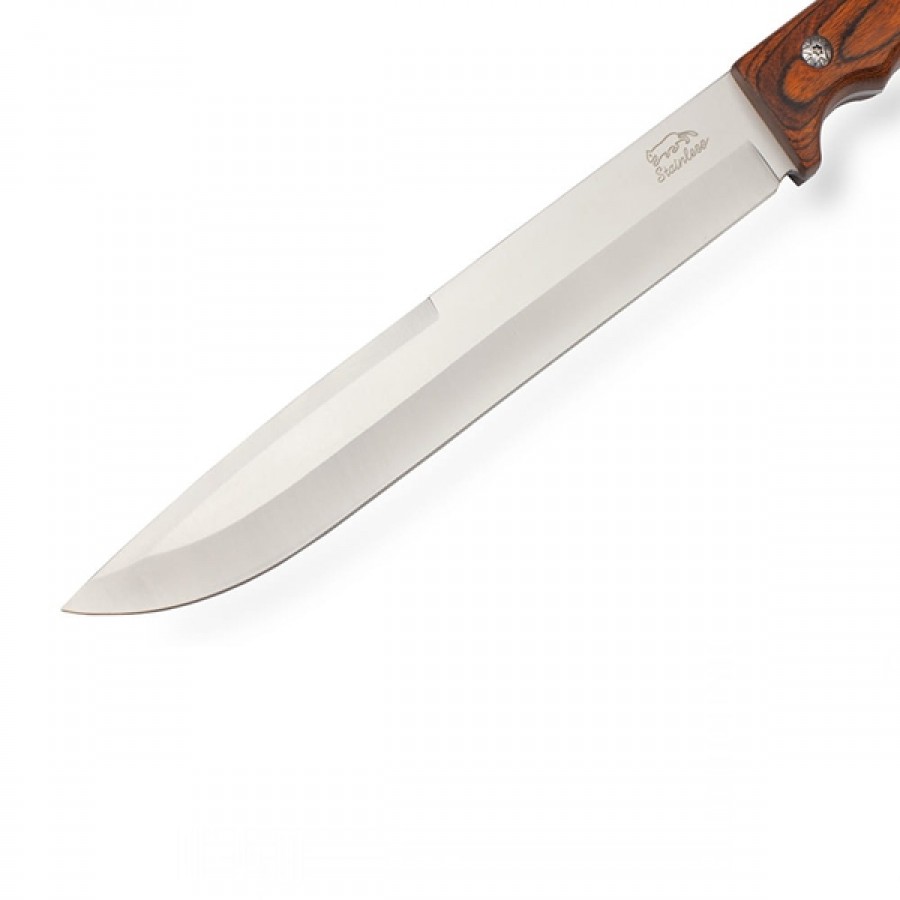 Cutit de vanatoare Wood Specialist, 40.5 cm, otel inoxidabil, maro, husa inclusa