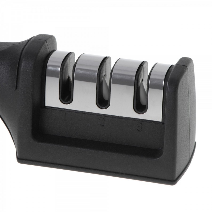 - Utilizare Simpla: Nu necesita apa sau electricitate; ascutirea se realizeaza prin miscarea cutitului intr-o singura directie spre utilizator.