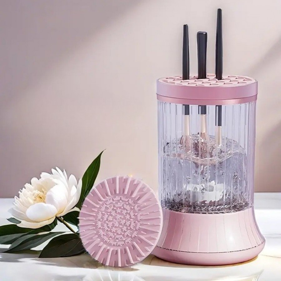 Dispozitiv Portabil pentru Curățarea Pensulelor de Machiaj, 7000RPM, Sonice, USB Type-C, Roz/Transparent – Curățare Eficientă și Rapidă pentru Pensulele Tale!