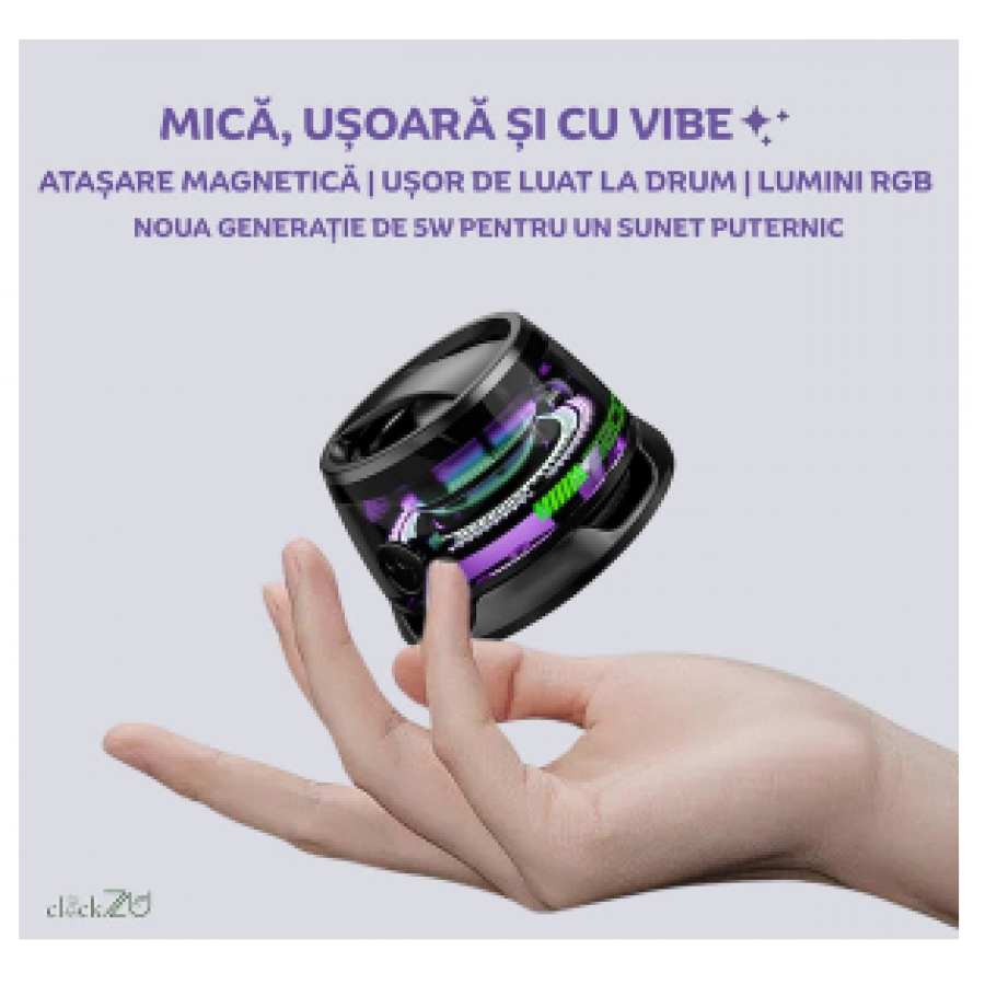 Boxa cu Bluetooth si prindere magnetica clickzu — mica, usoara si cu vibe. Ai nevoie de