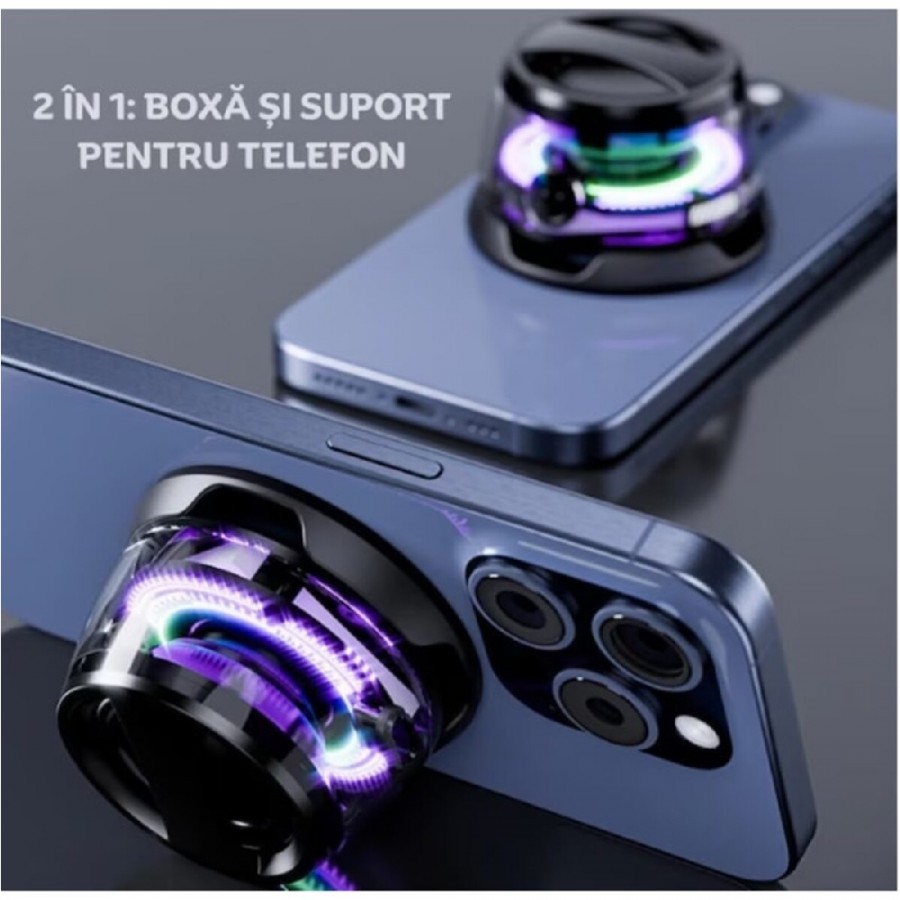 Etichete: Boxa Portabila cu Bluetooth, 5W, Prindere MagSafe si Inel Magnetic, Suport Telefon 2 in 1, RGB, Boxe si aparate radio, Electronice