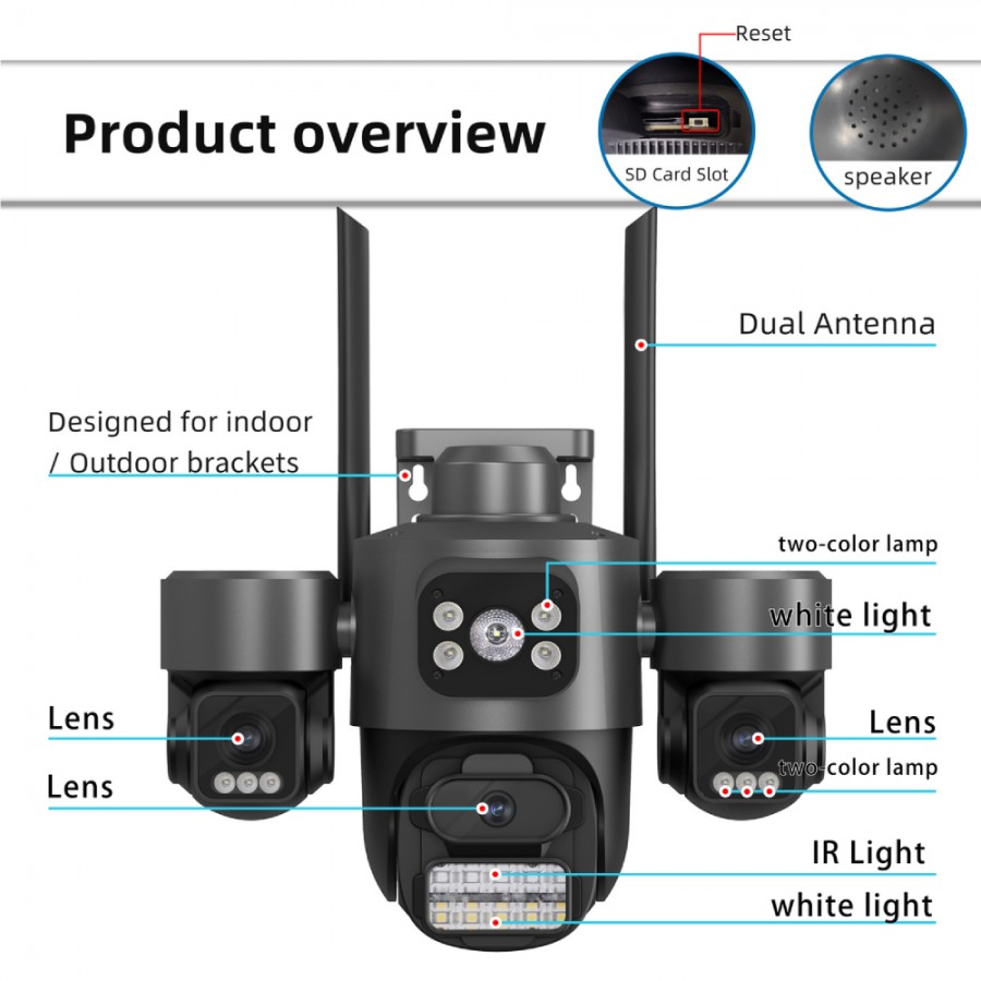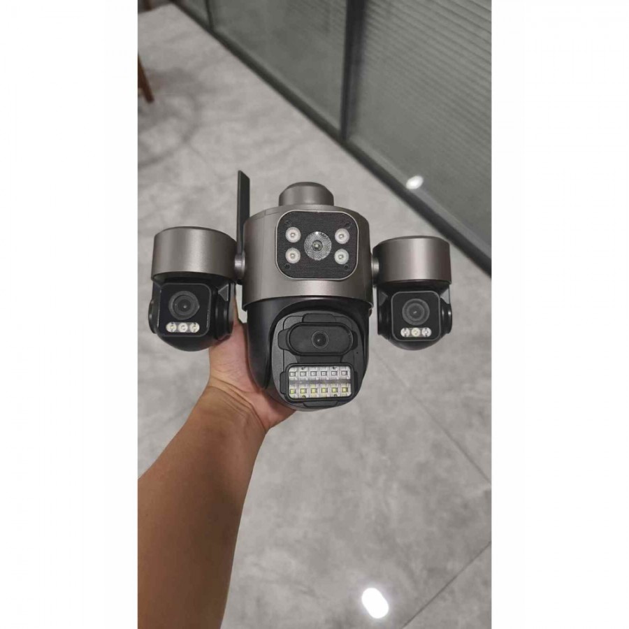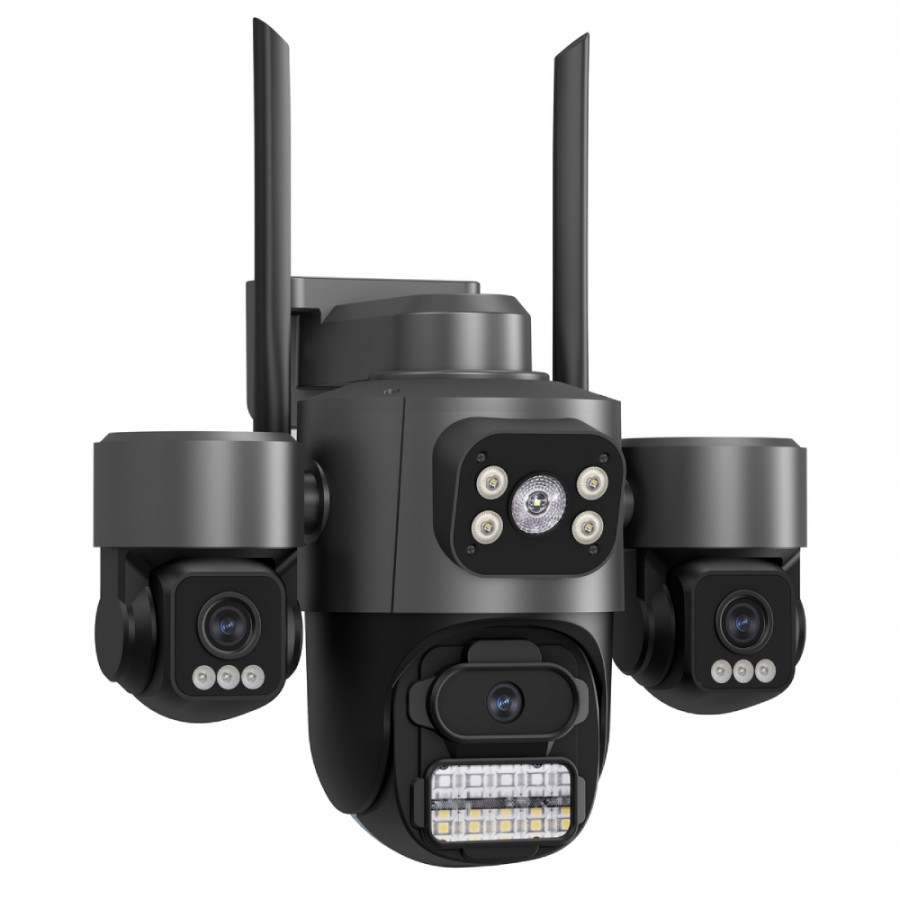 Camera WiFi cu 3 Lentile, Rezistenta la Apa, Vedere de Noapte, Rezolutie 3MP, Alarma si Difuzor