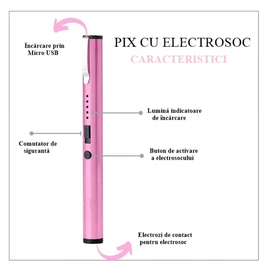 Etichete: Electrosoc tip stilou Muria, incarcare USB, cu 3.7V, indicator LED, roz