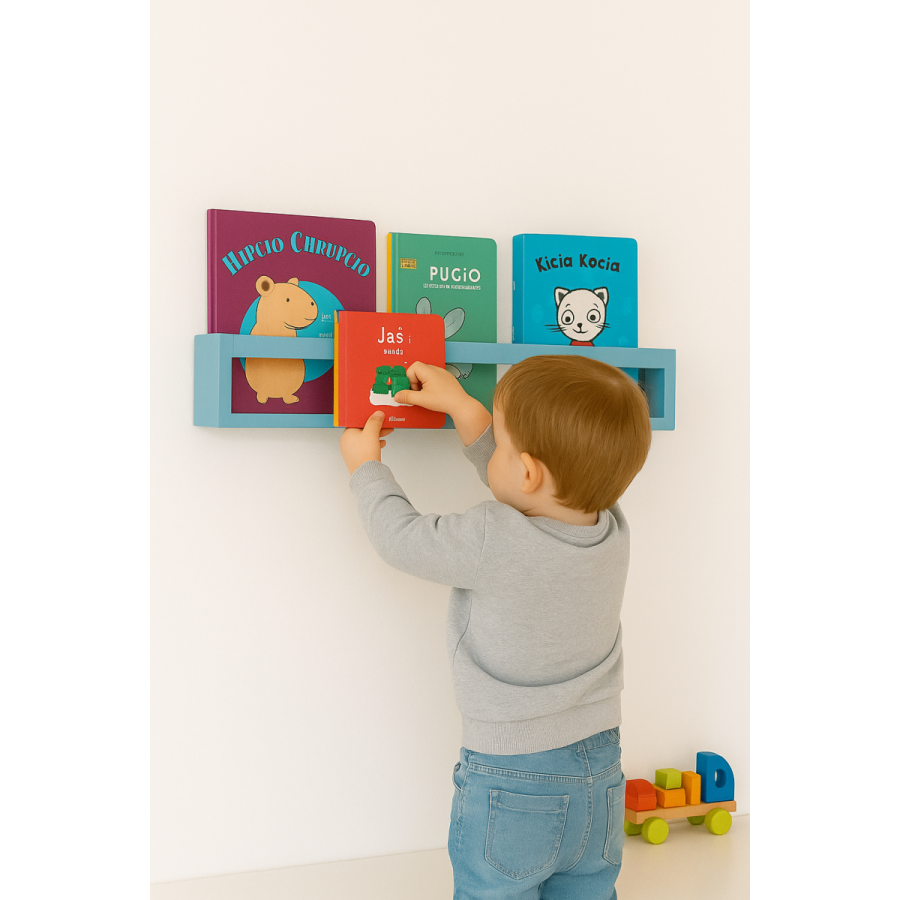 Aceasta etajera nu este doar un obiect de mobilier, ci o invitatie catre independenta, curiozitate si dragoste pentru lectura. Poate fi montata pe perete sau asezata direct pe mobilier, adaptandu-se nevoilor si stilului camerei copilului tau.