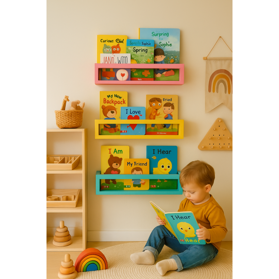 Aceasta etajera nu este doar un obiect de mobilier, ci o invitatie catre independenta, curiozitate si dragoste pentru lectura. Poate fi montata pe perete sau asezata direct pe mobilier, adaptandu-se nevoilor si stilului camerei copilului tau.
