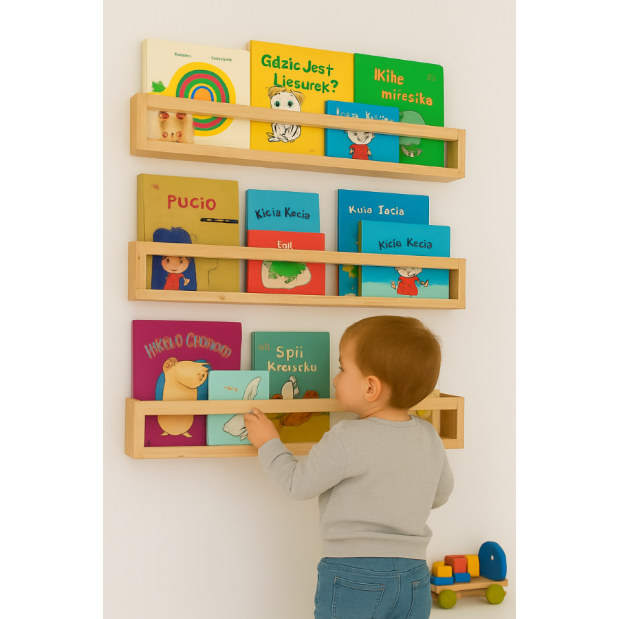 Aceasta etajera nu este doar un obiect de mobilier, ci o invitatie catre independenta, curiozitate si dragoste pentru lectura. Poate fi montata pe perete sau asezata direct pe mobilier, adaptandu-se nevoilor si stilului camerei copilului tau.