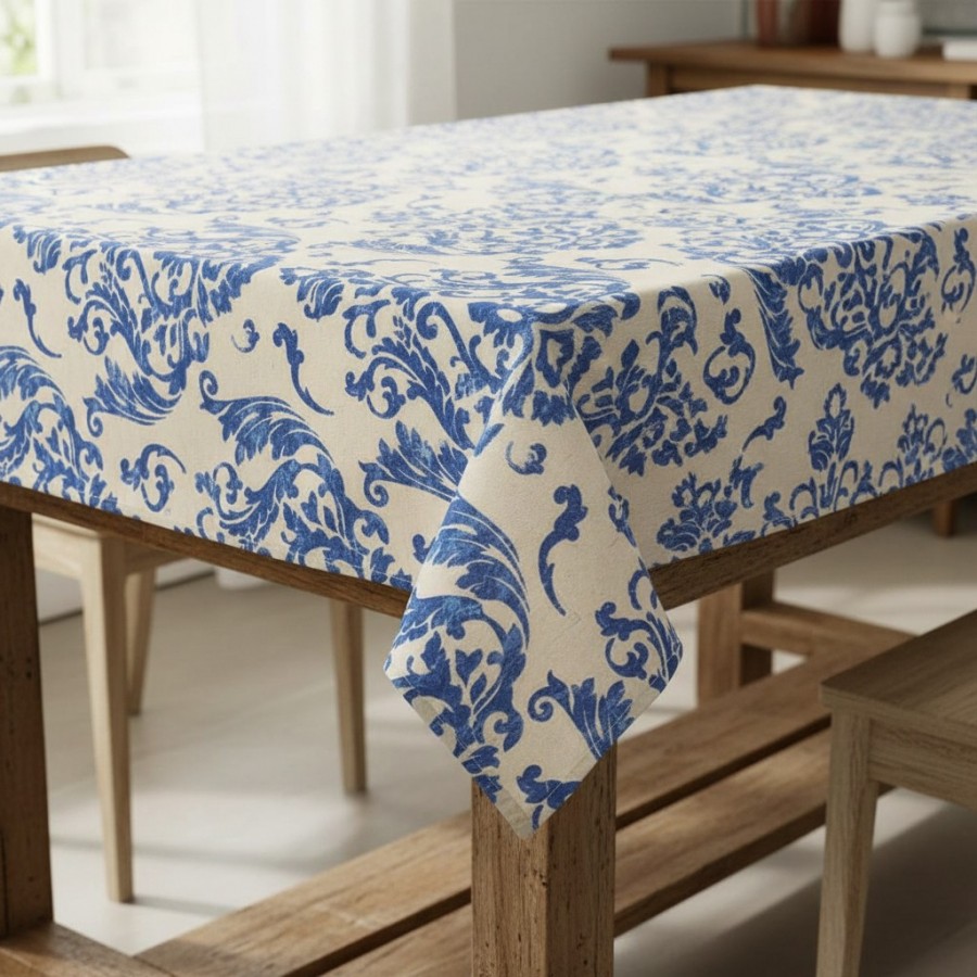 Etichete: Fata de masa, material textil, bumbac/poliester, 180x140 cm, bej albastru, stil baroc, Bucatarie si Servire, Articole pentru casa