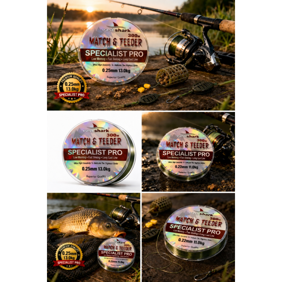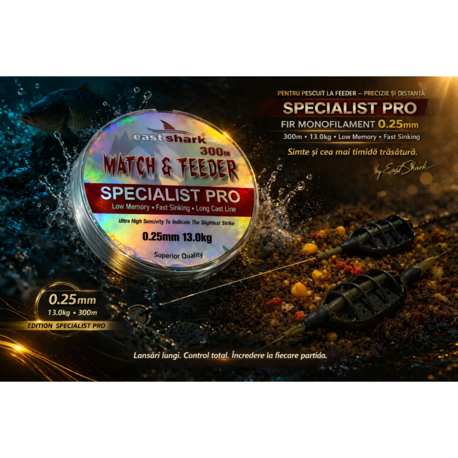 Vând fir de pescuit East Shark Specialist Pro Match & Feeder, alegerea ideală pentru partide serioase și pești mari.