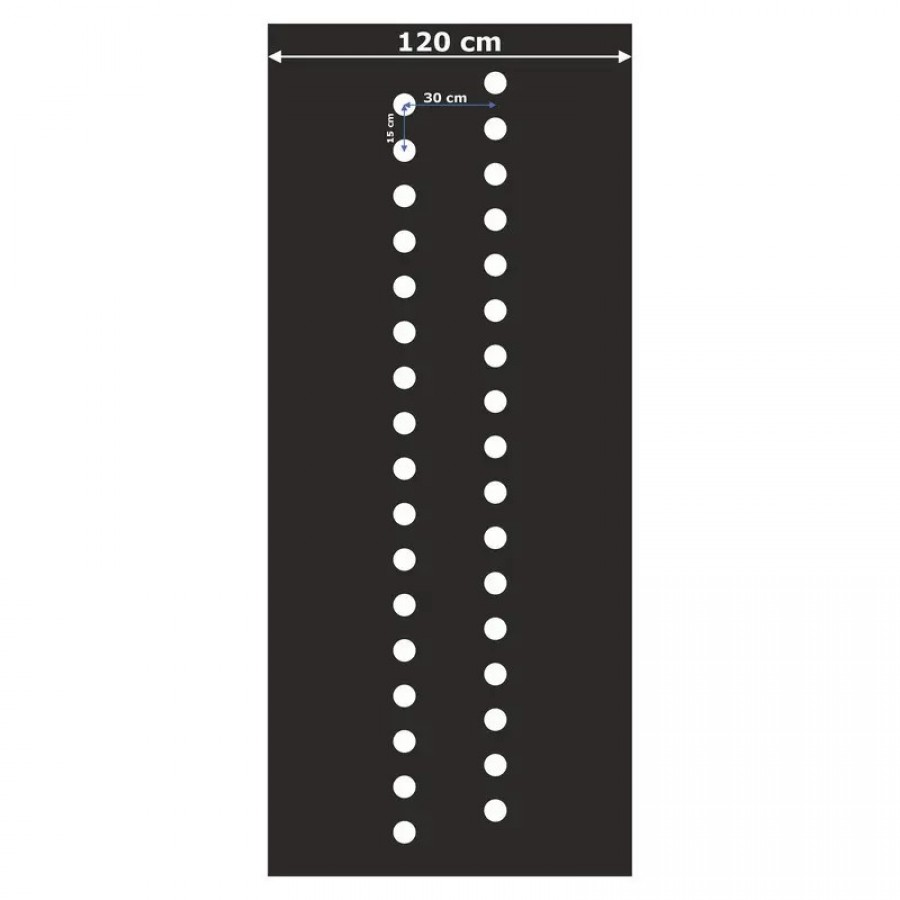 Folie mulcire neagra perforata zig zag (30x15), 30 microni, dimensiuni 1.2x500 metri