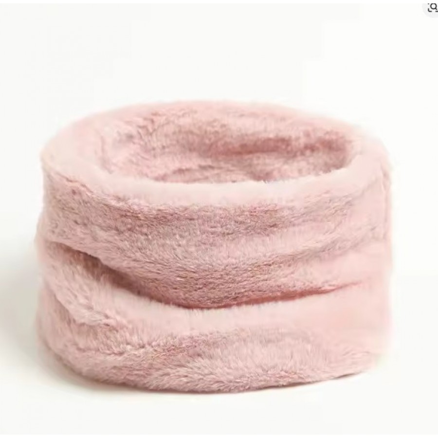 Fular circular din blana ecologica, roz, cu snur pentru ajustare, 27x30 cm