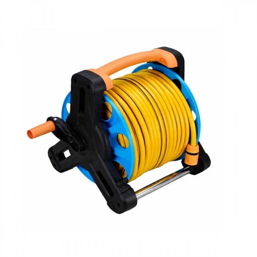 Tamburul permite depozitarea rapidă și organizată a furtunului, economisind spațiu. Mânerul integrat facilitează manipularea, iar construcția compactă îl face ideal pentru grădină, balcon, curte sau garaj.